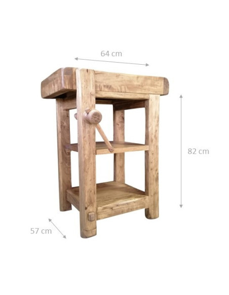 Etabli rustique en bois massif de tilleul, finition naturelle Made in Italy