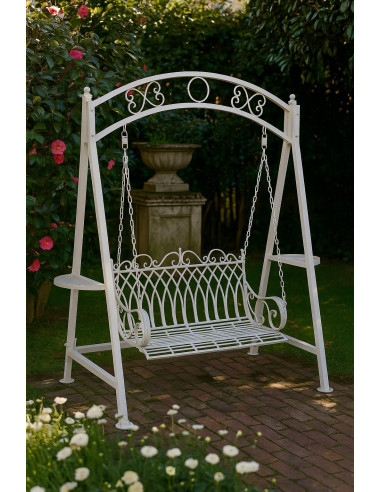 Fauteuil à bascule à deux places en fer forgé finition blanche patinée L198XPR100xH220 cm