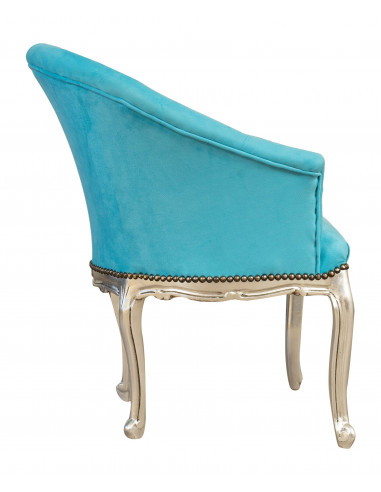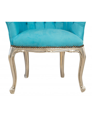 Chaise Fauteuil de style français Louis XVI, hêtre massif, sculpté à la main longueur 68 cm, profondeur 67 cm, hauteur 82 cm. Finition naturelle traitée, légèrement patinée argent Shabby. Siège et dossier rembourrés à la main.