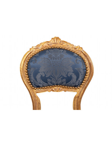 Fauteuil français de style Louis XVI en bois de hêtre massif avec finition or et bleu antique