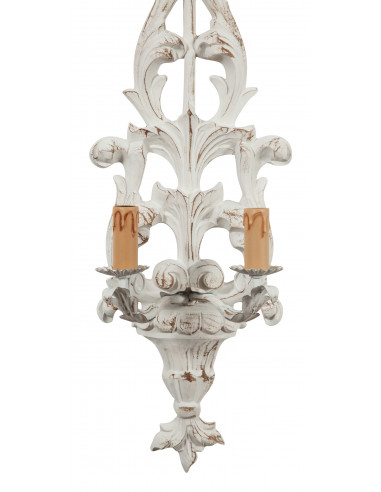 Lampe murale Shabby en bois et fer finition blanc vieilli fabriqué en Italie