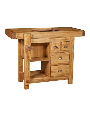 Bahut en bois massif de tilleul finition noyer L100xPR55xH101 cm