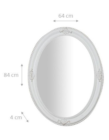 Miroir à paroi avec cadre ovale aux dimensions L64xPR4xH84 cm. Fait de bois, c'est un accessoire pratique et esthétique, idéal pour tout environnement, déjà préparé pour l'installation horizontale ou verticale