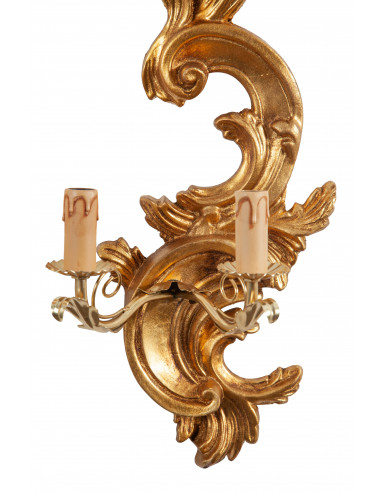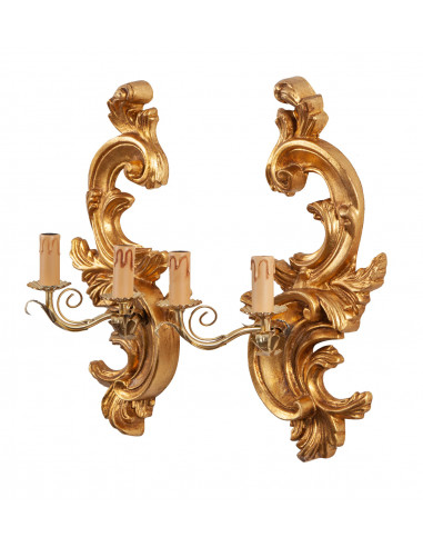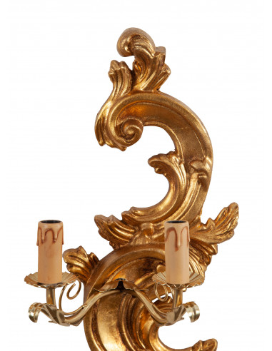Paire de lampes Shabby en bois et fer finition feuille d’or finition fabriqué en Italie