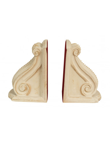 Paire de serre-livres en bois antique finition blanche Made in Italy