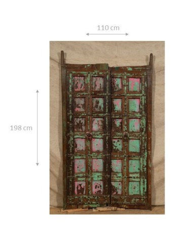 Porte coulissante médiévale ancienne en bois massif et en fer pour l'intérieur ou l'extérieur