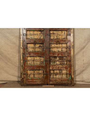 Porte coulissante médiévale ancienne en bois massif et en fer pour l'intérieur ou l'extérieur