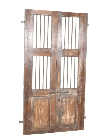 Porte ancienne en bois massif de teck, dimensions : longueur 108 cm, profondeur 3 cm, hauteur 185 cm. Cette porte provient de la démolition et de la récupération d'anciens bâtiments importants. Finement restaurée et traitée pour un usage extérieur, chaque porte est une pièce d'antiquité authentique et unique. Toutes les mesures se réfèrent à l'encombrement maximal de l'article.