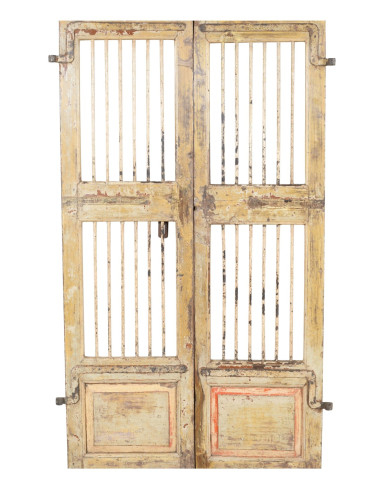 Porte ancienne en bois massif de teck, dimensions : longueur 104 cm, profondeur 4 cm, hauteur 173 cm. Cette porte provient de la démolition et de la récupération d'anciens bâtiments importants. Finement restaurée et traitée pour un usage extérieur, chaque porte est une pièce d'antiquité authentique et unique. Toutes les mesures se réfèrent à l'encombrement maximal de l'article.