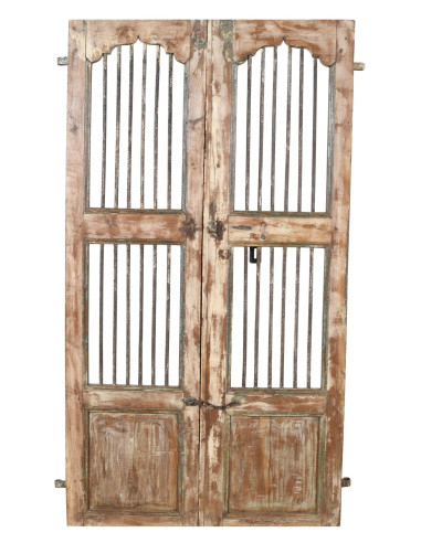 Porte ancienne en bois massif de teck, dimensions : longueur 106 cm, profondeur 3 cm, hauteur 182 cm. Cette porte provient de démolitions et de récupérations d'anciens bâtiments importants. Finement restaurée et traitée pour un usage extérieur, chaque porte est une pièce d'antiquité authentique et unique. Toutes les mesures se réfèrent à l'encombrement maximal de l'article.