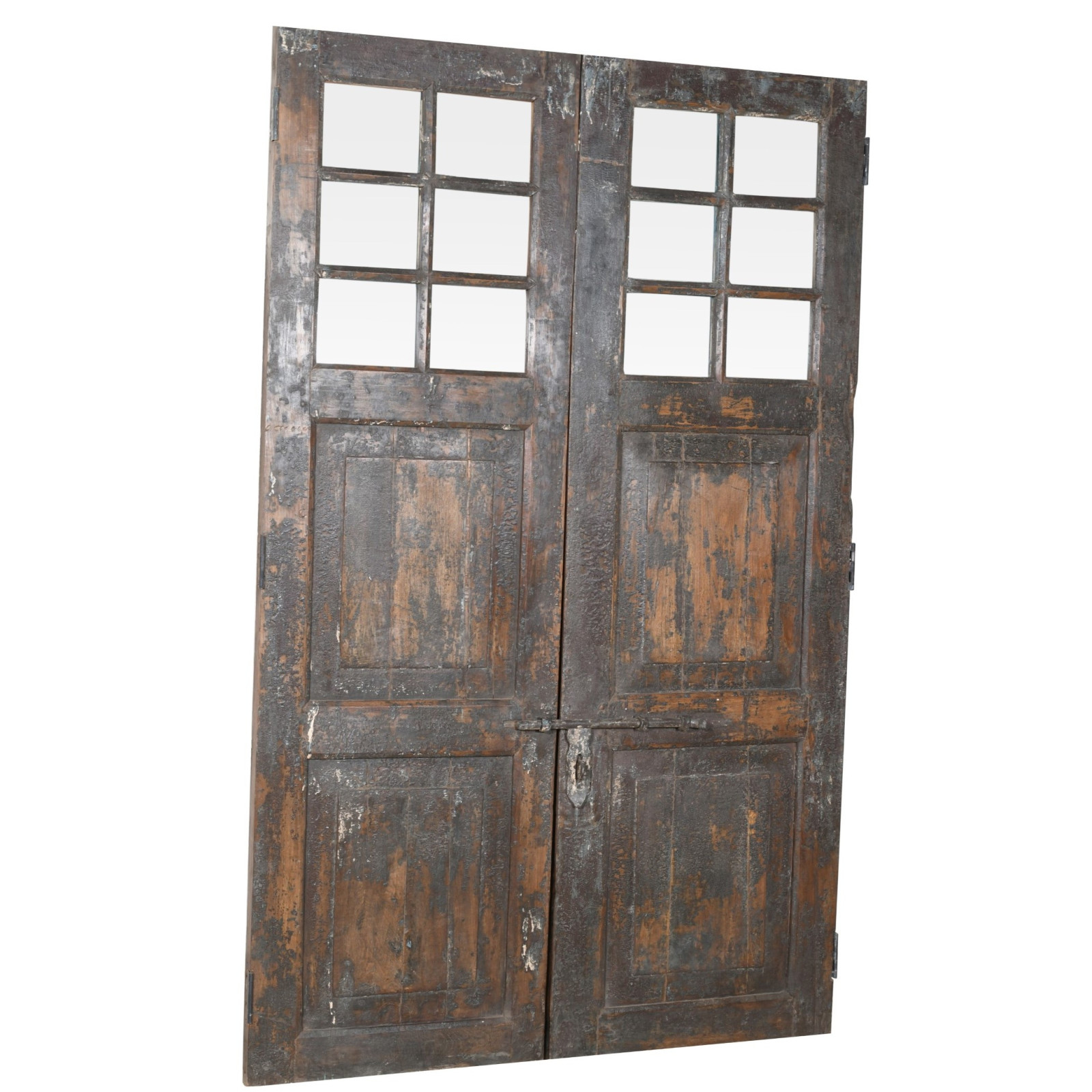 Porte d'entrée en bois massif et fer forgé pour intérieur ou extérieur, ancienne et médiévale, avec vitrage
