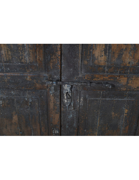Porte ancienne en bois massif de teck, dimensions : longueur 128 cm, profondeur 4 cm, hauteur 206 cm. Cette porte provient de la démolition et de la récupération d'anciens bâtiments importants. Finement restaurée et traitée pour un usage extérieur, chaque porte est une pièce d'antiquité authentique et unique. Toutes les mesures se réfèrent à l'encombrement maximal de l'article.