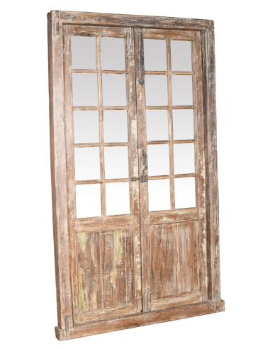 Porte ancienne en bois massif de teck, dimensions : longueur 123 cm, profondeur 10 cm, hauteur 210 cm. Cette porte provient de la démolition et de la récupération d'anciens bâtiments importants. Finement restaurée et traitée pour un usage extérieur, chaque porte est une pièce d'antiquité authentique et unique. Toutes les mesures se réfèrent à l'encombrement maximal de l'article.