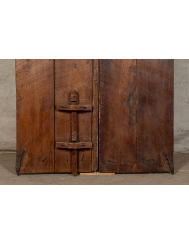 Porte antique en teck massif de 113 cm de longueur, 9 cm de profondeur et 187 cm de hauteur. Cette porte provient de la démolition et de la restauration d'importants bâtiments anciens. Finement restaurée et traitée pour un usage extérieur, chaque porte est une véritable pièce d'antiquité unique. Toutes les mesures se réfèrent aux dimensions maximales de l'article.