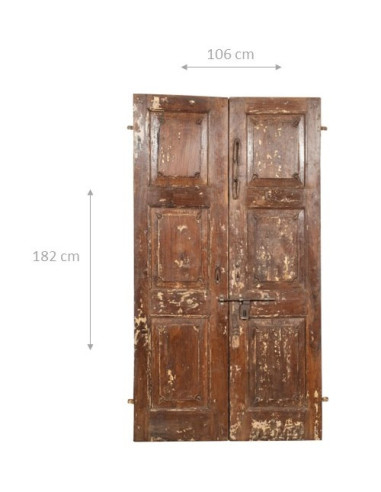 Porte/ancienne porte en bois de teck massif, dimensions 106 cm de largeur, 7 cm de profondeur, 182 cm de hauteur. Cette porte provient de la démolition et de la restauration d'importants bâtiments anciens. Finement restaurée et traitée pour un usage extérieur, chaque porte est une pièce d'antiquité authentique et unique. Toutes les mesures se rapportent aux dimensions maximales de l'article.