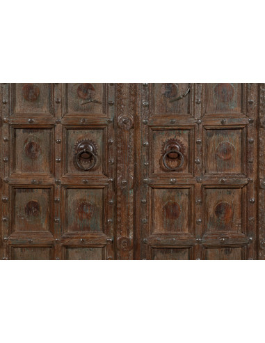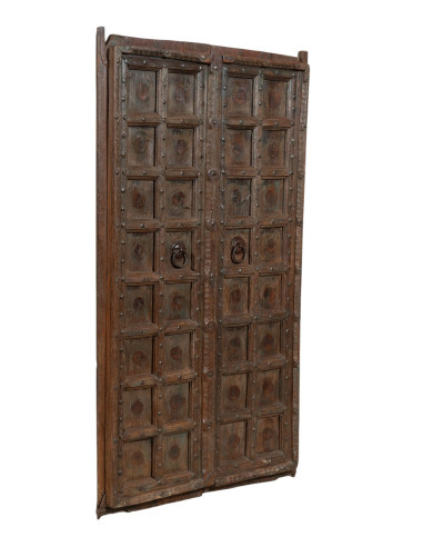 Porte en bois massif et en fer pour l'intérieur ou l'extérieur, de style médiéval.