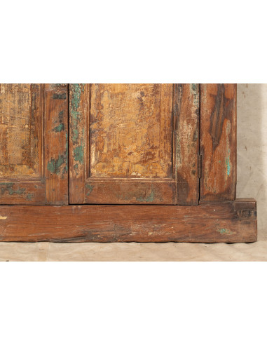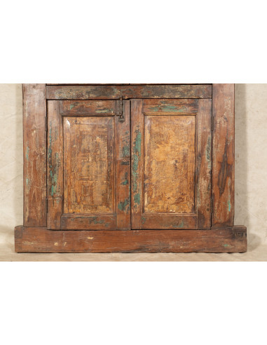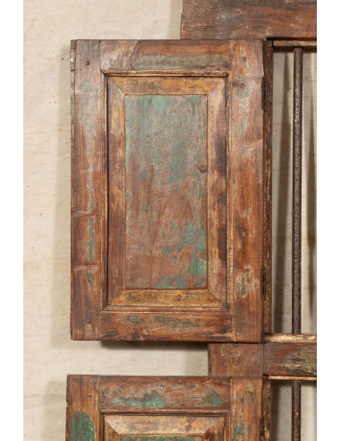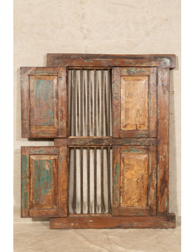 Porte en bois massif et grille de fenêtre en fer ancien avec cadre intérieur ou extérieur