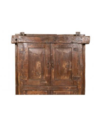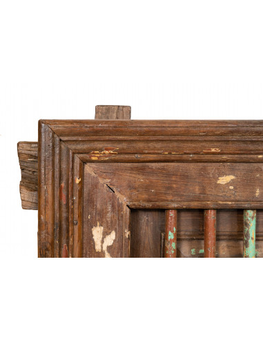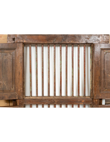 Porte grille de fenêtre en bois massif et fer ancien avec cadre intérieur ou extérieur