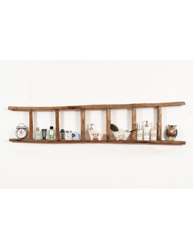 Escalier en bois de 44x8x180 cm. Il reproduit fidèlement l'ancien escalier, tant du point de vue de l'esthétique que de la construction, les côtés étant constitués d'un seul tronc d'arbre coupé en deux. Un meuble très polyvalent, ainsi qu'un outil fonctionnel pour la vie quotidienne. Comme ils sont fabriqués à la main, chaque escalier peut être légèrement différent des autres en termes de finition.