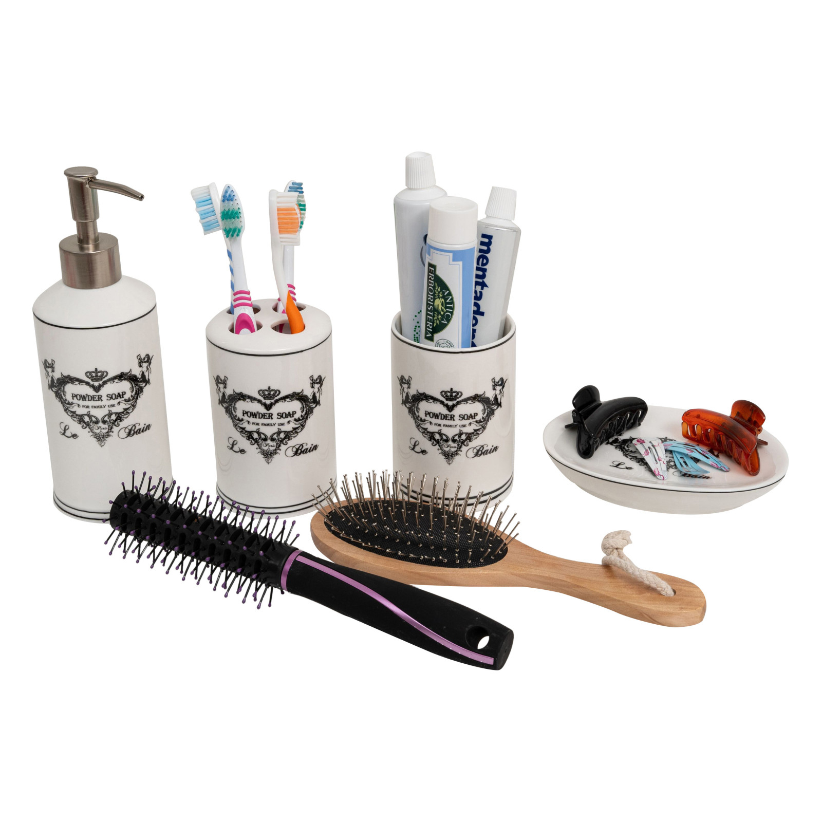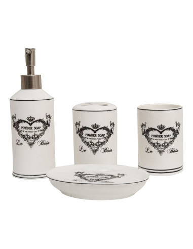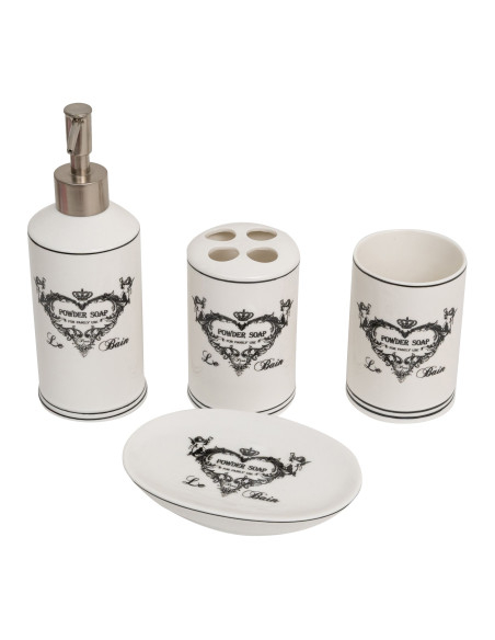 Set de salle de bains en porcelaine blanche composé par 4 pièces décorées Savons Superfines L25xPR10xH21 cm