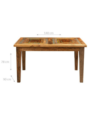 Table de bureau rectangulaire en vieux bois massif recyclé, dimensions : longueur 140 cm, profondeur 90 cm, hauteur 78 cm. Entièrement peint à la main avec des vernis naturels, les nombreuses nuances font de chaque table une pièce unique. Pour les amateurs de meubles de campagne, Shabby etc... et pour ceux qui aiment généralement meubler leur maison avec rusticité, en plus de cette table solide, très robuste et belle, Biscottini propose une large gamme de meubles d'intérieur et d'extérieur, indispensables pour meubler tout type de pièces et d'environnements.