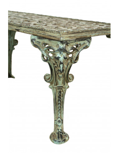 Table de fumeur en fonte très robuste, stable et lourde, avec des dimensions de longueur 90 cm, profondeur 48 cm, hauteur 43 cm, avec une finition soignée entièrement faite à la main, obtenant un véritable effet antique. Décore avec élégance tout environnement intérieur ou extérieur. Toutes les mesures se réfèrent à la taille maximale de l'article.