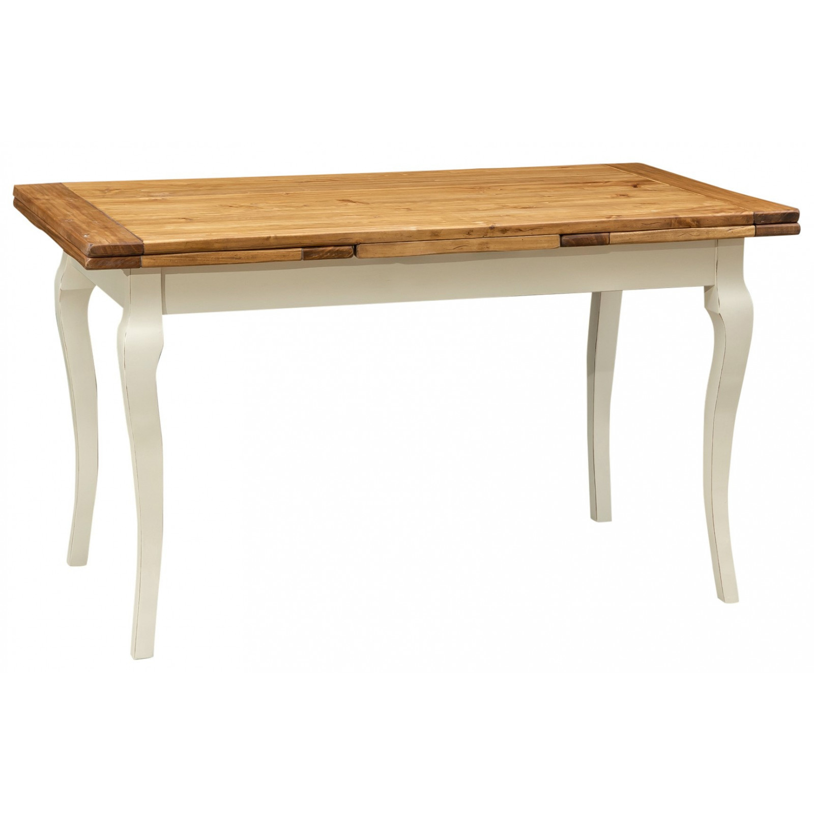 Table de style Country en bois massif de tilleul châssis blanche vieillie sur surface finition naturelle aux dimensions L140xPR8
