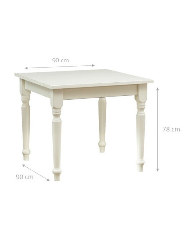 Table carrée dans un style champêtre aux dimensions L90xPR90xH78 cm, fait de bois massif de tilleul en bois avec dessus en mdf. La résistance et la durabilité inégalées caractéristiques typiques de l'artisanat méticuleux fabriqué en Italie. Les lignes traditionnelles et la blanche finition en font la combinaison parfaite avec n'importe quel style et de l'environnement.