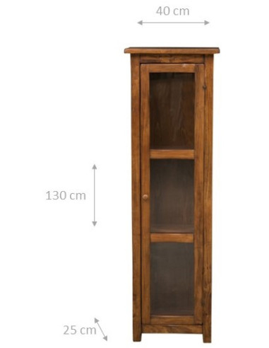 Vitrine entièrement artisanale Made in Italy en bois de tilleul massif. Les petites dimensions, 40x25x130 cm, le rendent polyvalent et pratique pour compléter l'aménagement de tout style de style campagnard.