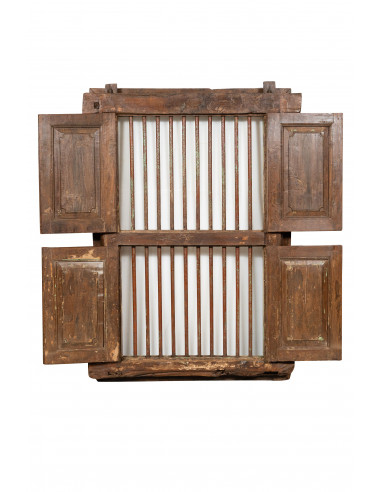 Antik ablak tömör teakfából, hossza 114 cm, mélysége 14 cm, magassága 157 cm. Ez az ablak régi és fontos épületek bontásából és helyreállításából származik. Finoman felújítva, minden ablak egy darab igazi és egyedi régiség. Minden méret a cikk maximális méreteire vonatkozik.