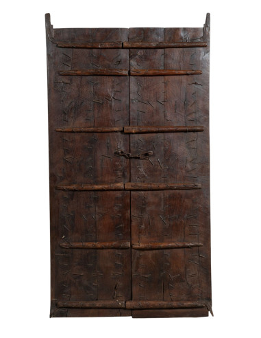 Ajtóajtó tömör fából és vasból a régi és az ősi középkor belsejéből vagy kívülről