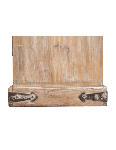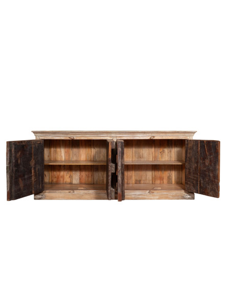 Szilárd és sokoldalú szekrény, újrahasznosított tömör fából készült. Kézzel festett, természetes festékekkel, a sokféle árnyalatok minden bútort egyedivé tesznek. Tágas, zárt polcokkal rendelkezik. Mérete L214xPR46xH90 cm, könnyen illeszkedik bármilyen környezetbe. Ideális az antik bútorok és a fa szerelmeseinek.