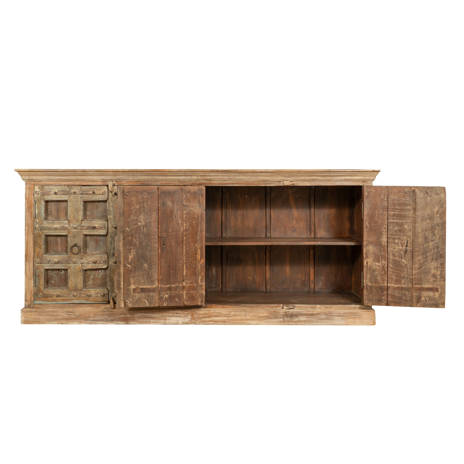 Szilárd és sokoldalú szekrény, újrahasznosított tömör fából készült. Kézzel festett, természetes festékekkel, a sokféle árnyalatok minden bútort egyedivé tesznek. Tágas, zárt polcokkal rendelkezik. Mérete L224xPR51xH90 cm, könnyen illeszkedik bármilyen környezetbe. Ideális az antik bútorok és a fa szerelmeseinek.