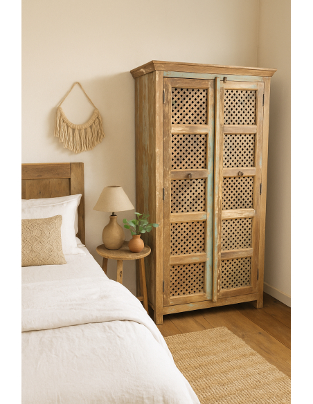 Fa szekrény rácsokkal