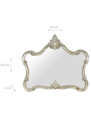 Fából készült fali tükör, antikolt ezüst levéllel díszítve Made in Italy