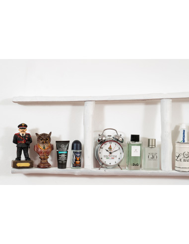 Fából készült létra, méretei: L28xPR7xH100 cm. Ez a létra esztétikailag és szerkezetileg is hűen reprodukálja a régi létrákat, amelyek oldalait egyetlen, kettévágott fatörzsből vágták ki. Nagyon sokoldalúan felhasználható bútordarab és funkcionális eszköz a mindennapi életben. Mivel kézzel készült, minden létra kissé eltérhet a másiktól a kivitelezés...