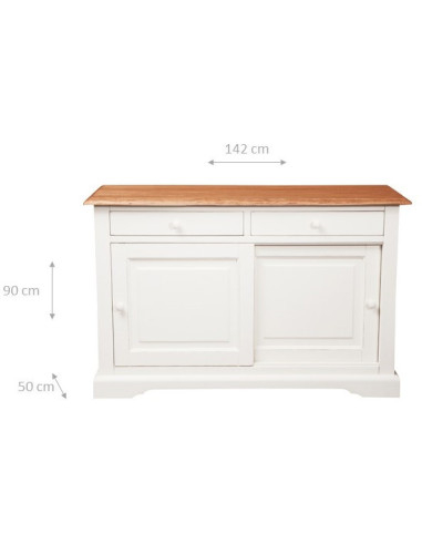 Vidéki tálaló tömör hársból öregített fehér szerkezetű természetes felületű felső L142xPR50xH90 cm. Készült Olaszországban