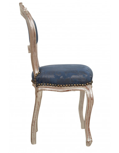 Francia Louis XVI stílusú karosszék tömör bükkfából, ezüst és kék kivitelben