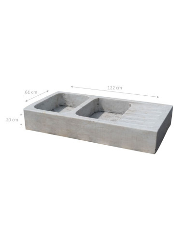Két lyukú mosogató fehér márványból L122xPR61xH20 cm