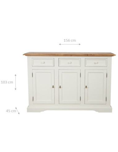 Shabby-Country Chic tálaló masszív, kézzel készített mészfából, öreg, fehér szerkezetű, természetes felületű felső L156xPR45