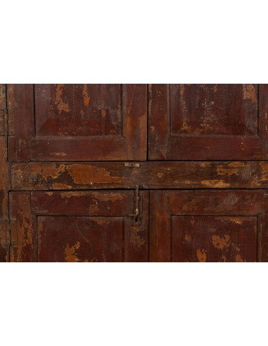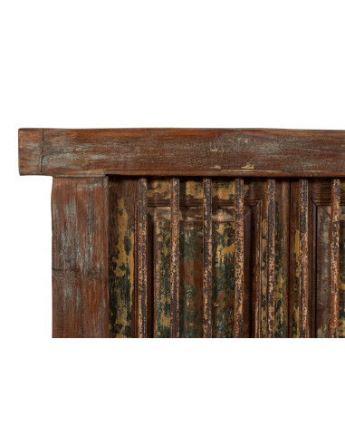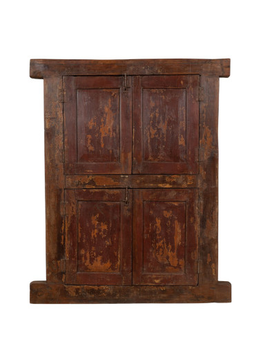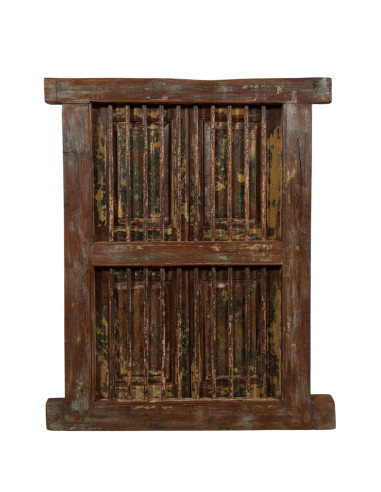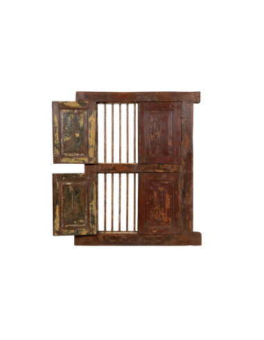 Masszív fa és régi középkori vas ablakrács belső vagy külső kerettel