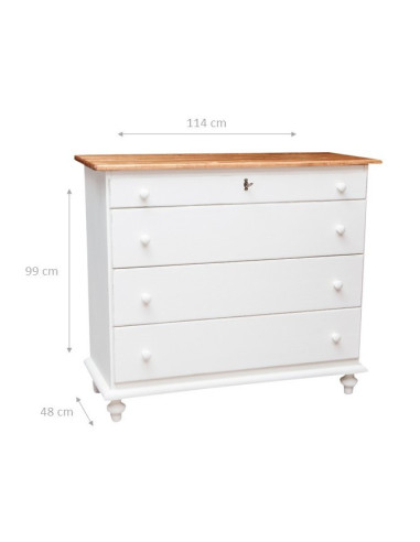 Azok számára, akik vidéki stílusú bútorokat keresnek lakberendezéshez, a Biscottini ezt a fiókos szekrényt kínálja, ideális egy vidéki bútorhoz. A szekrények és az éjjeliszekrények csak a hálószobai bútorok számára javasolt bútorok részét képezik. A bútorokon kívül a Biscottini mindent kínál irodai, nappali, fürd?szoba, konyhabútorokhoz. Röviden: mindent, ami otthonát berendezi az osztálytal.Minden mérés a cikk maximális méretére vonatkozik