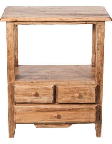 Éjjeli szekrény L56xPR36xH66 cm, teljes egészében tömör hársfa, funkcionális nyitott rekesszel és három kényelmes fiókkal, fészkel? illesztésekkel és fa gombokkal ellátva. Az esztétikai és funkcionális tulajdonságok, az er? és az id?vel szembeni ellenállás jellemzik a Made in Italy gyártást. Az elegánsan eredeti, vidéki stílusú kialakítás ideális kombinációt kínál bármilyen környezethez