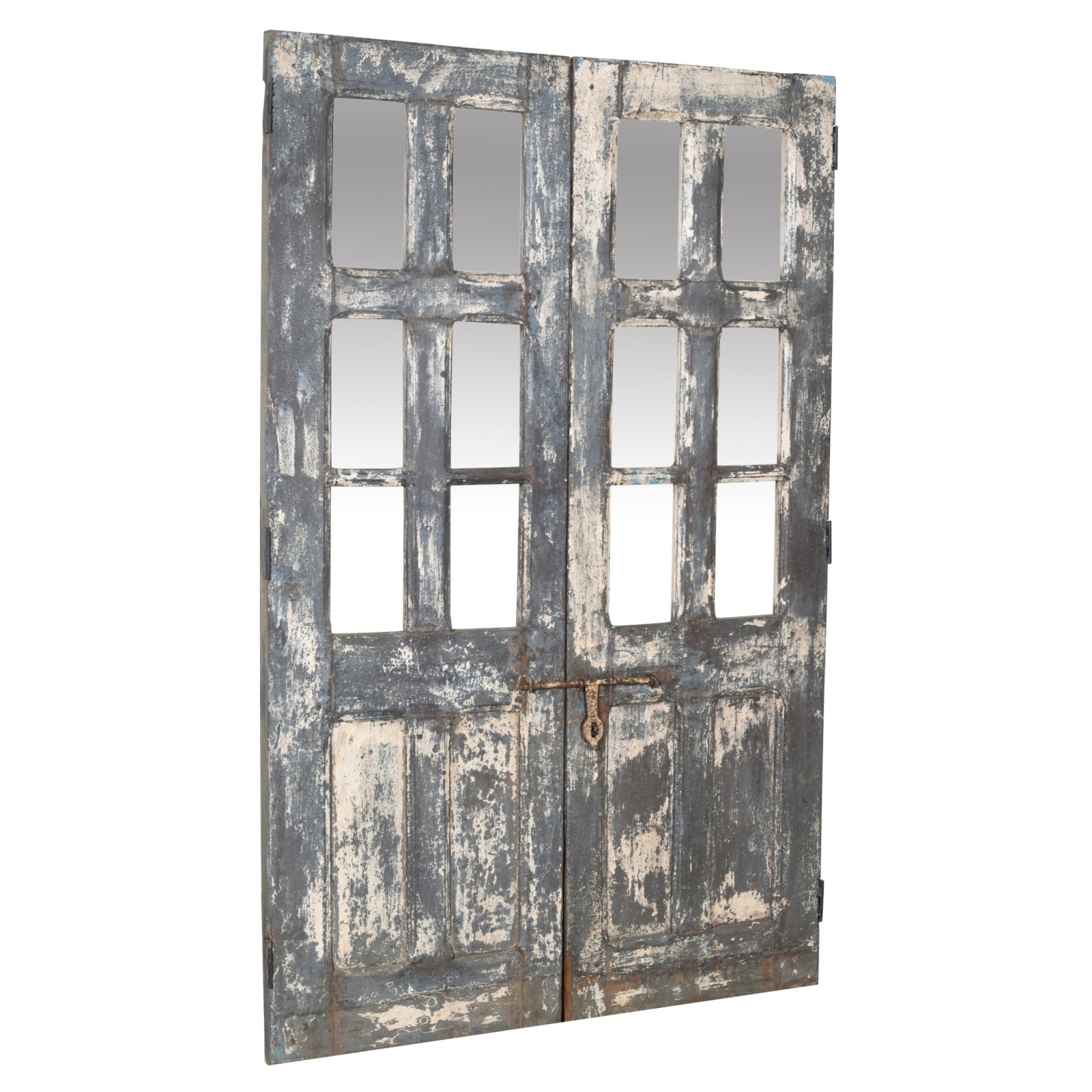Régi, középkori, üvegezett, tömör fából és vasból készült beltéri vagy kültéri ajtó