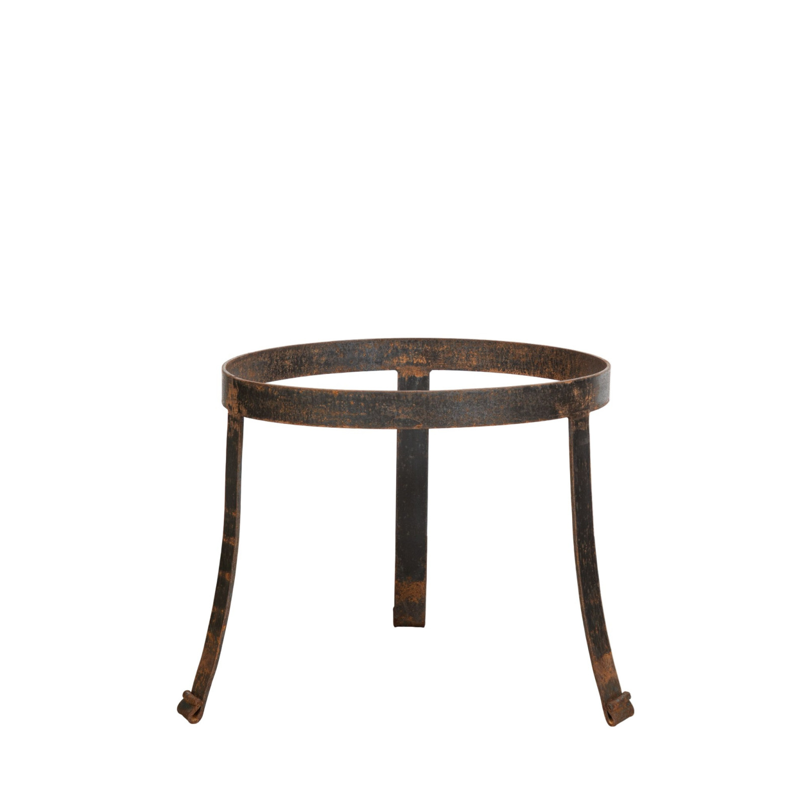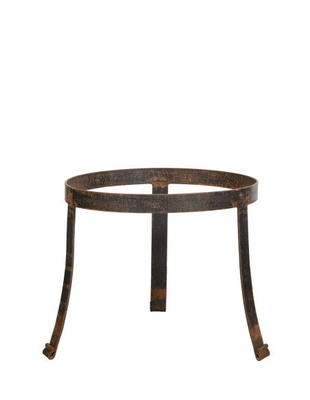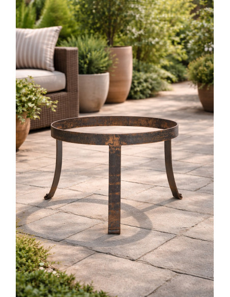 Kézzel kovácsolt, kezeletlen vas virágcserép-tartó, természetes rozsdás felülettel. Nagyon robusztus és sokoldalú szerkezet, beltéri és kültéri használatra egyaránt alkalmas. Méretek: szélesség 55 cm, mélység 55 cm, magasság 46 cm.