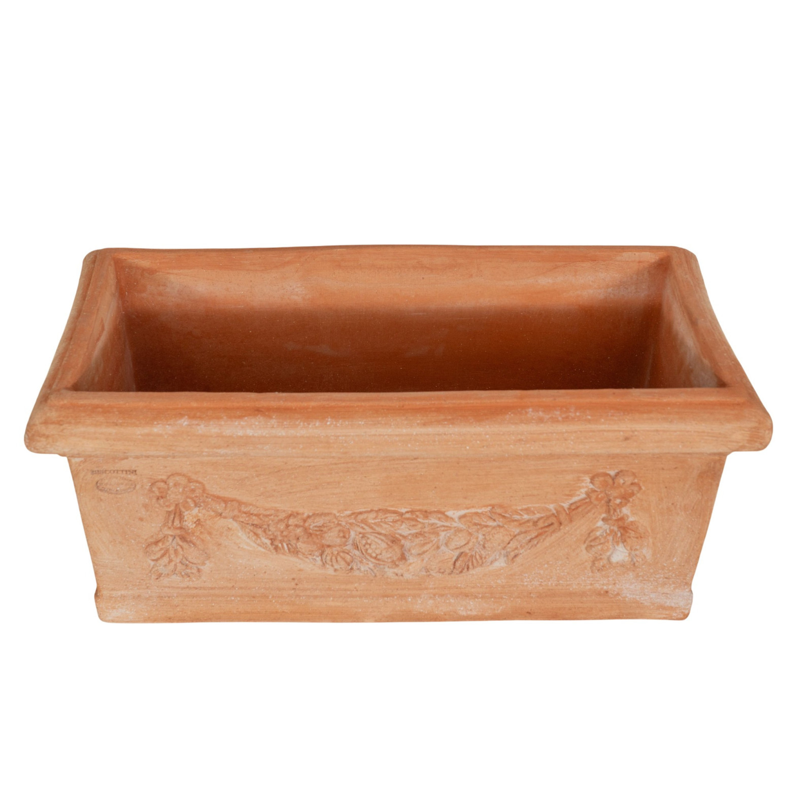 Kézzel készített, fagyálló toszkán galestro agyagból készült láda, mérete 61 cm hosszú, 29 cm mély és 27 cm magas. Az elkészítés és az égetés a régi toszkán hagyományokat követi. A föld minősége és az égetési rendszer miatt a termék nagyon ellenálló a fagy és az időjárási viszontagságokkal szemben. A teljes egészében kézzel végzett feldolgozás minden terméket egyedi darabbá tesz.