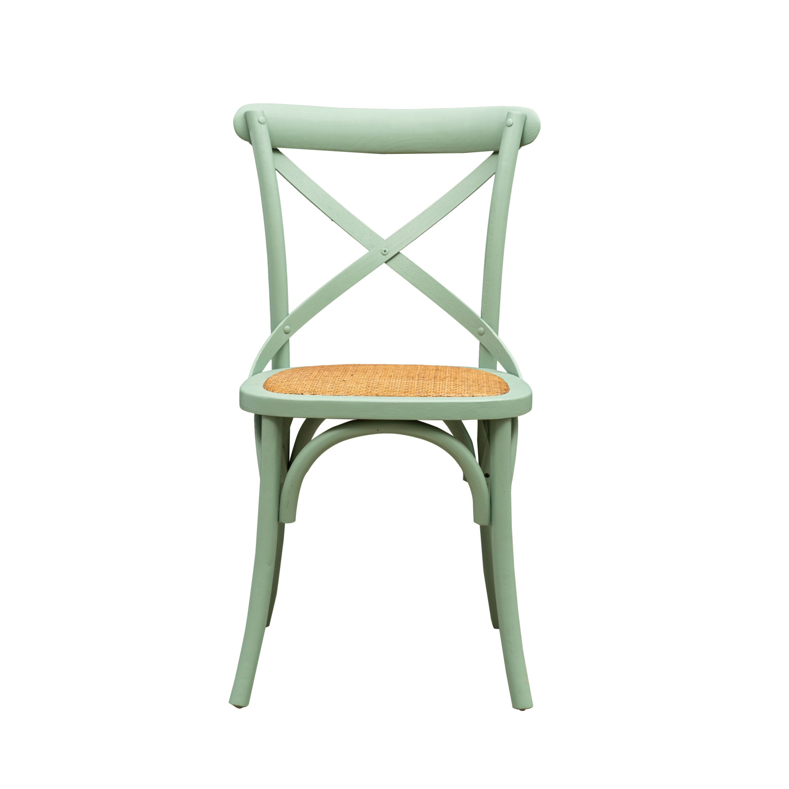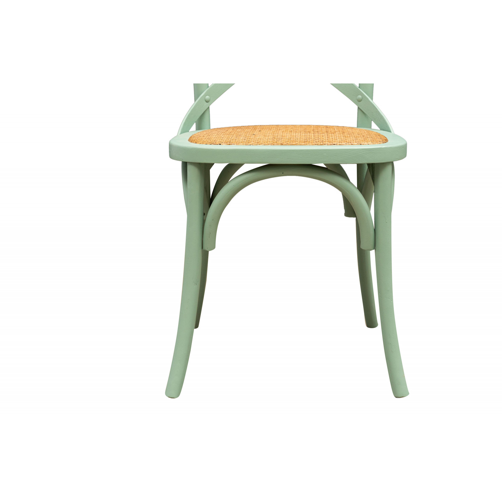 A szék szélessége 48 cm, mélysége 52 cm, magassága 88 cm Thonet stílusban tömör kőrisből, keresztezett háttámlával és szövött rattanszálas ülőfelülettel. Bisztró kialakításuknak köszönhetően ideálisak bármilyen környezet vagy szoba vintage stílusú dekorálásához, anélkül, hogy feláldoznák a kényelmet.