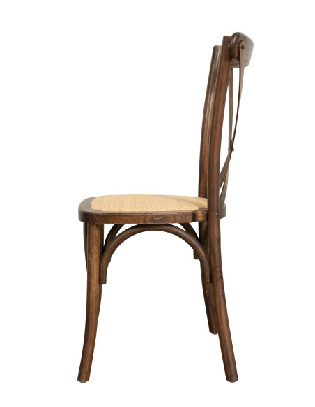 Szék, szélessége 48 cm, mélysége 52 cm, magassága 88 cm, Thonet stílusban, tömör kőrisből, keresztezett háttámlával és fonott rattanszálas ülőfelülettel. Bisztró kialakításának köszönhetően ideális bármely helyiség vagy helyszín vintage stílusú berendezéséhez, anélkül, hogy a kényelmet feláldozná.Minden méret a cikk maximális teljes méretére vonatkozik.