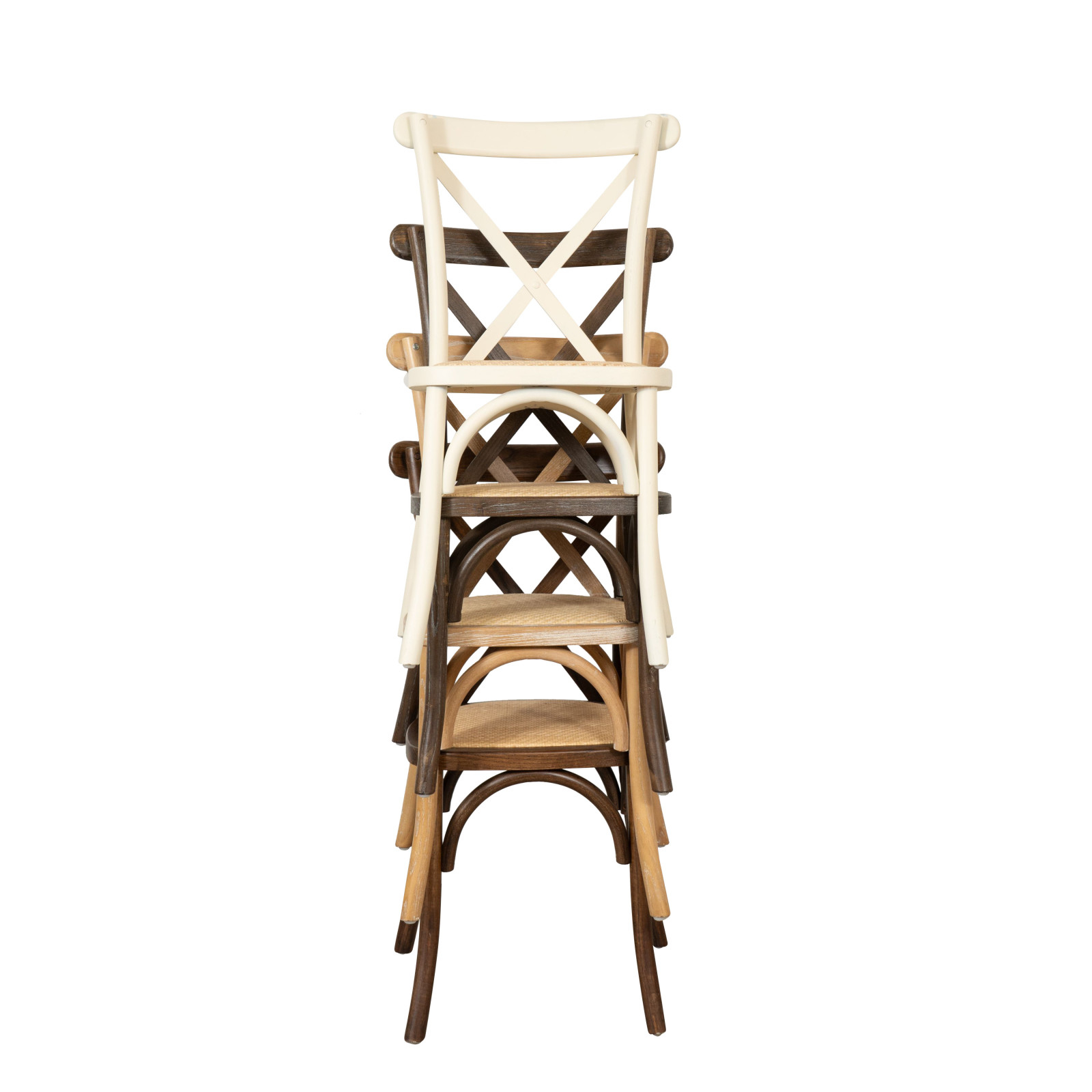 Szék, szélessége 42 cm, mélysége 44 cm, magassága 88 cm, Thonet stílusban, tömör kőrisből, keresztezett háttámlával. Bisztró kialakításának köszönhetően ideális bármely helyiség vagy helyszín vintage stílusú berendezéséhez, a kényelem feláldozása nélkül. A padlótól az ülőfelületig 46 cm magas.Minden mérés a cikk maximális összméretére vonatkozik.