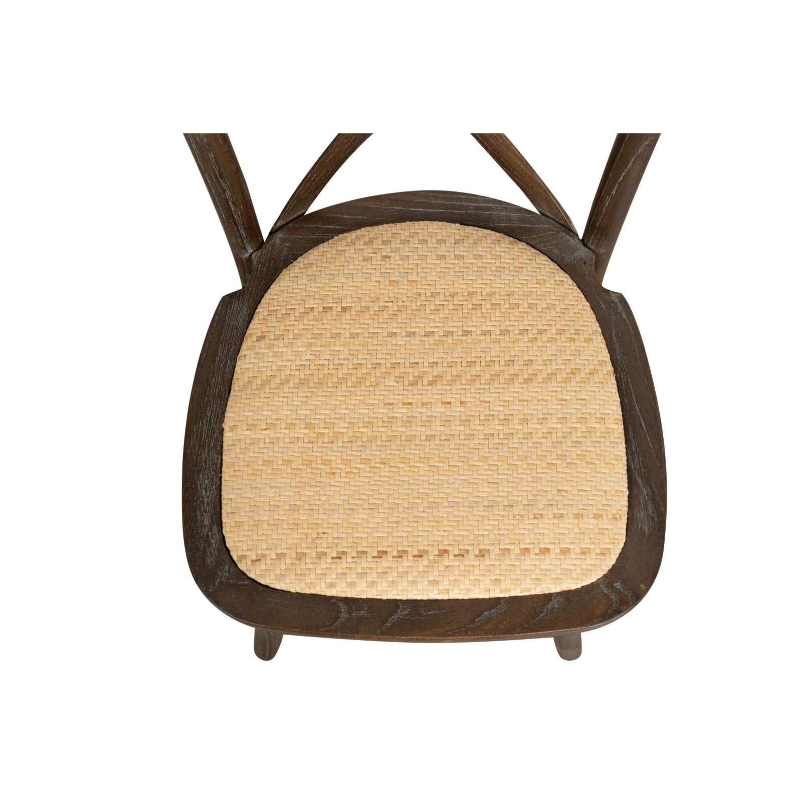 Thonet Cross szék tömör fából és rattan ülőfelülettel, antik barna kivitelben, egymásra rakható